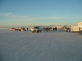 The Bill Burke Kellison ran at the Bonneville salt flats in 1962. It went around 212 mph on the initial run and broke on the back up run-so no record. But it was in all of the magazines and on the poster for the following year. The producers for the movie 'Worlds Fastest Indian' heard that we had the car and asked us to bring it for background in the movie set. We actually provided 4 cars total. It is a great movie, not just because we had a part in it, if you haven't seen it yet, you really should take the time to watch it. Sir Anthony Hopkins is truly one of the greatest actors ever. They timed the filming of the movie to coincide with Speed Week so there were actual speed runs happening on another part of the salt flats-it is a big place.